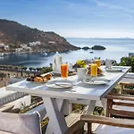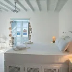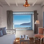 O interior tem TV de tela plana com canais via satélite e TV via satelite, bem como vistas para a Baía de Grikos. Os hóspedes também irão desfrutar de varanda e local de descanso, bem como o ferro e tábua de passar, ferro de passar, controle de temperatura fornecidas para uma estadia mais confortável. O quarto inclui casa de banho separada e chuveiro, secador de cabelo e toalhas.